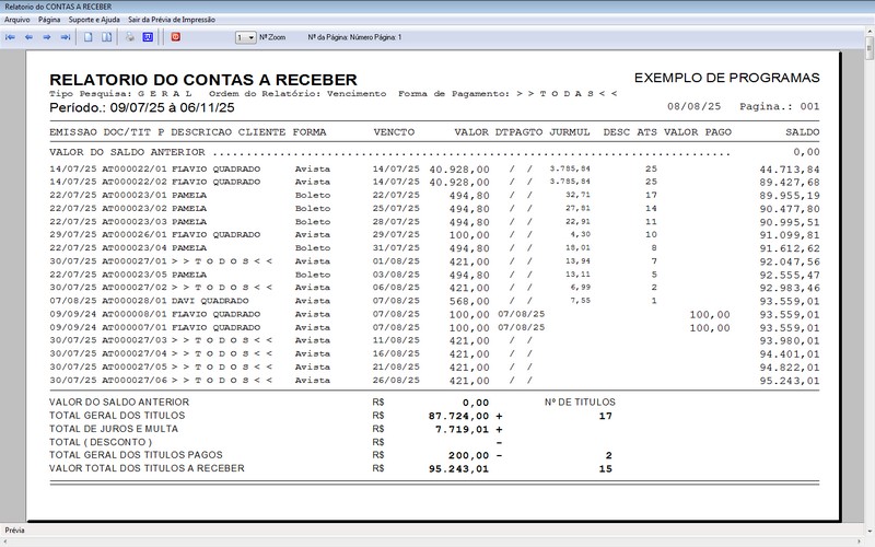 Contas a Pagar / Recibo de Pagamento / Exames Médicos / Relatório